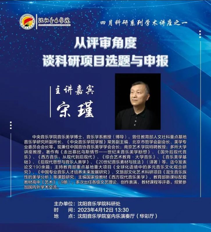 四月科研系列学术讲座预告(一)-----宋瑾《从评审角度谈科研项目选题与申报》