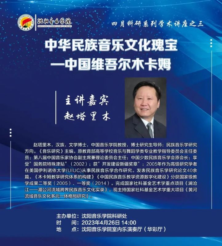 四月科研系列学术讲座(三)-----赵塔里木《中华民族音乐文化瑰宝---中国维吾尔木卡姆》