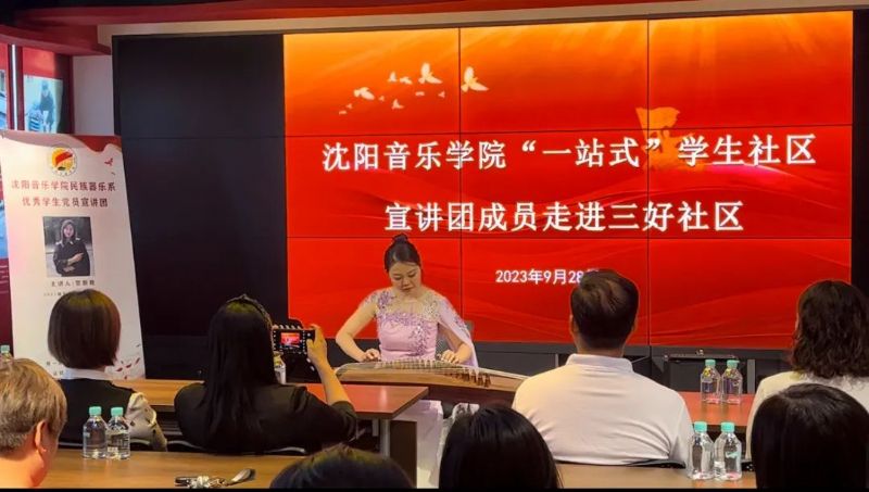 9月28日,我院“一站式”学生社区宣讲团走进三好社区开展红色经典音乐作品讲演会。沈阳市和平区三好社区书记田莉,我院学生处处长蒋雪丽、民族器乐系党总支书记常亮、学生处相关负责人及三好社区40余名党员参加活动。