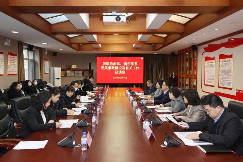 12月14日,学院召开部分教学单位党风廉政建设及有关工作调研座谈会。党委书记赵恒心,纪委书记、监察专员闫玉娇出席座谈会并讲话。相关职能部门负责同志,作曲系、音乐学系领导班子成员、各教研室主任、教师党员代表和学生党员代表参加座谈会。
