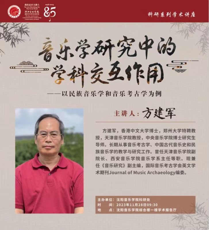 嘉宾简介:方建军,香港中文大学博士,郑州大学特聘教授,天津音乐学院教授,中央音乐学院博士研究生导师。长期从事音乐考古学、中国古代音乐史和民族音乐学的教学与研究工作。曾任天津音乐学院副院长、西安音乐学院音乐学系主任等职。现兼任《音乐研究》副主编,国际音乐考古学会英文学术期刊Journal of Music Archaeology编委。