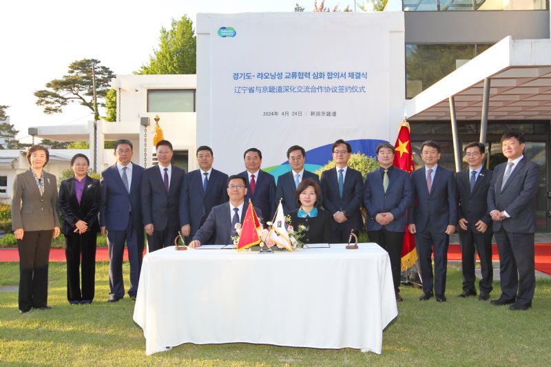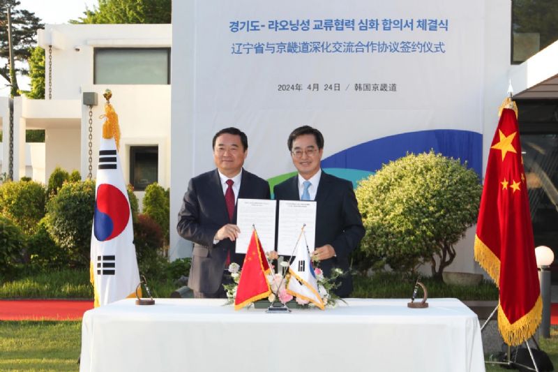 辽宁省委书记、省人大常委会主任郝鹏与京畿道知事金东兖共同签署两省道进一步深化交流合作协议