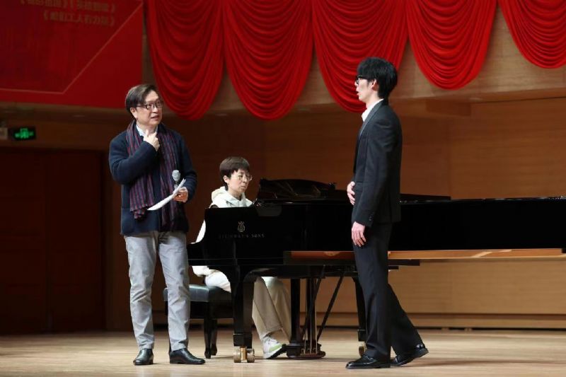 比赛期间,学院还特别举办周正教授、曲学选教授大师课,邀请担任比赛评委的上海音乐学院周正教授、中国音乐学院曲学选教授对部分参赛选手进行专业指导。来自学院各二级院(系)相关专业的师生们现场观摩学习。两位专家就选手们的演唱技巧、发音掌握以及比赛心理、备战方法等作了有针对性的指导。