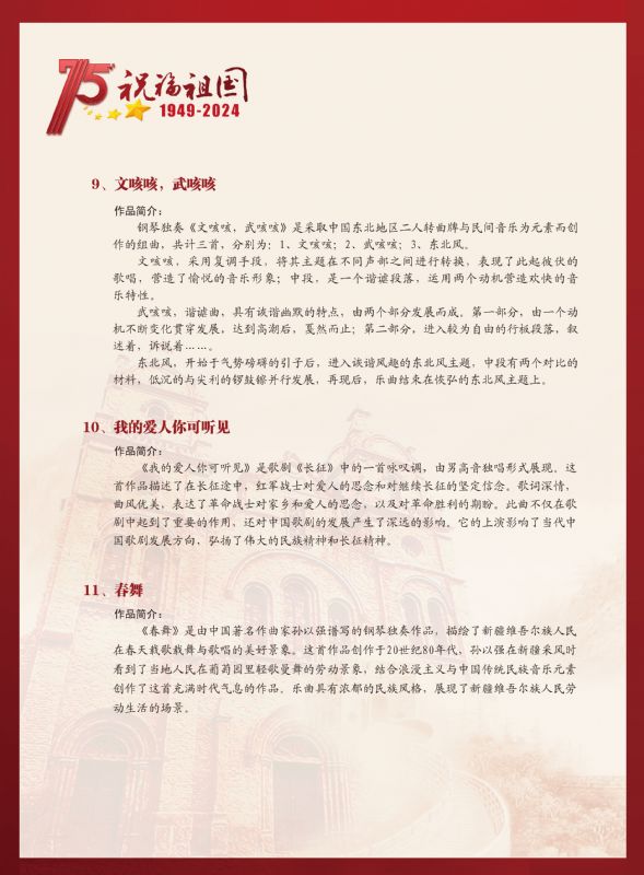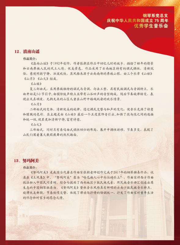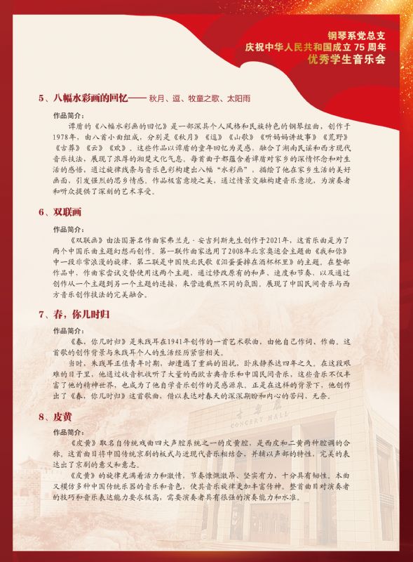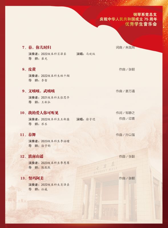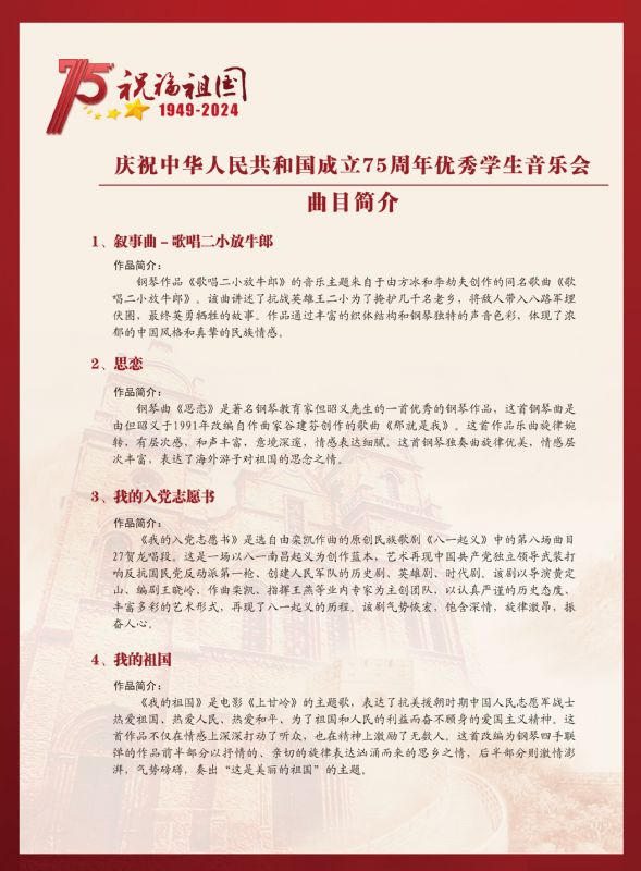 音乐会名称:祝福祖国——钢琴系党总支庆祝中华人民共和国成立75周年优秀学生音乐会