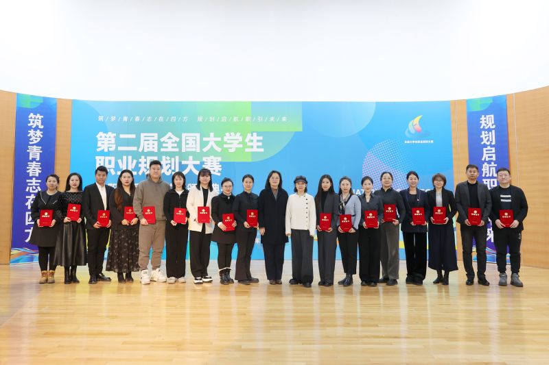 庞渤在颁奖仪式上讲话。他首先对获奖的学生们表示祝贺,对指导教师的辛勤付出表示感谢。他指出,大学生职业规划大赛作为启蒙职业生涯意识、增强探索与规划、提升职业素养与就业能力的重要平台,为同学们提供了一个展示梦想的机会。他希望同学们以此次大赛为契机,认真做好自身职业规划,进一步提高个人的专业能力、求职能力、抗压能力、沟通协作能力和分析解决问题的能力,在未来的学习和发展中积极进取、从容不迫、开拓创新、奋力拼搏,并力争在省赛、国赛中再创佳绩,早日实现自己的职业梦想。