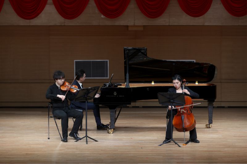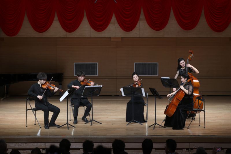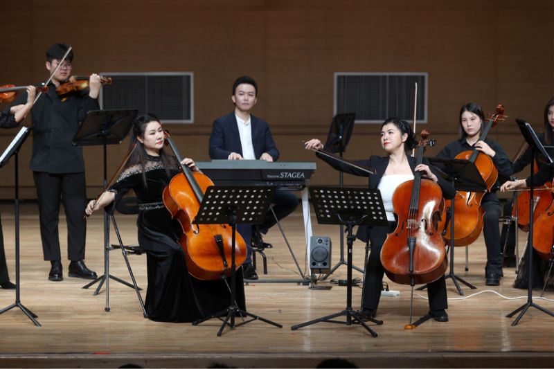 音乐会精彩纷呈,师生们现场演奏了安东尼奥·维瓦尔第的小提琴协奏曲《四季》——《春》《冬》和《g小调双大提琴协奏曲》、约翰·萨巴斯蒂安·巴赫的《d小调双小提琴协奏曲》、阿斯图尔·皮亚佐拉的《布宜诺斯艾利斯的四季》——《四季之冬》、贝拉·巴托克的《罗马尼亚民间舞曲》、本杰明·布里顿的《简易交响曲》——《喧闹的布列舞曲》《嬉闹的终曲》、莫扎特的《魔笛》——夜后咏叹调《复仇的火焰在我心中燃烧》共八首室内乐作品。舞台上的演奏者们配合精妙,张弛有度,钢琴、小提琴、中提琴、大提琴、低音提琴以不同的旋律线条交织融合,丰富的和声色彩和表现力精准地诠释出室内乐音乐作品蕴含的细腻情感和独特的艺术气韵。音乐会在由我国近代民族音乐家刘天华创作的作品《良宵》抒情、清新、明快的乐曲声中落下帷幕,师生们精彩的表现赢得了现场观众的热烈掌声。