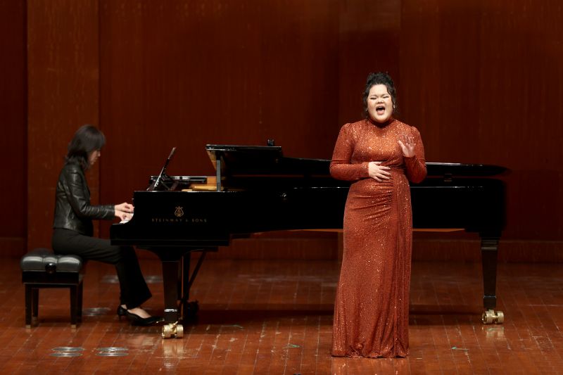 音乐会下半场亮点频现,东北民歌《双回门》展现出浓郁的东北地域音乐特色;笙独奏《甘榜印象》以中国传统乐器描绘南洋风情;音乐剧《剧院魅影》经典唱段《夜之乐章》,将古典美声与现代流行音乐完美融合,在钢琴伴奏下营造出神秘的氛围;钢琴曲《中国之梦》,以磅礴音符诠释时代精神。