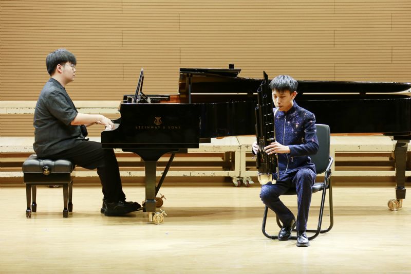 琵琶协奏曲《草原英雄小姐妹》,演奏者通过琵琶丰富的音乐语言和独特的演奏技巧,生动地描绘了小姐妹在暴风雪中的英勇表现和顽强精神。男中音、双簧管与钢琴共同演绎的《世间的流浪者》,细腻地表现出流浪者在绝望中的坚守和对光明的憧憬,以音乐形式将诗歌进行了深刻的诠释。《36簧笙〈酒歌〉第一乐章》,作品具有浓郁的民族风格,节奏热情奔放,年轻的演奏者通过精湛的演奏技巧,用中国民族器乐笙展现出劳动人民在饮酒欢歌时的热闹场景和欢快情绪。