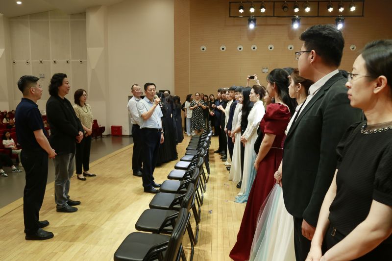 赵恒心代表学院党委向附中的同学们致以节日的问候,向精心筹备本场音乐会的师生表示感谢。他高度评价了同学们在音乐会上展现出的扎实功底和艺术热忱,精彩的演出既是为节日献礼,也为观众带来了美好的视听享受。他勉励同学们永葆艺术初心,听党话跟党走,在追求德艺双馨的道路上砥砺前行,用音乐才华谱写时代华章。