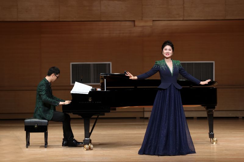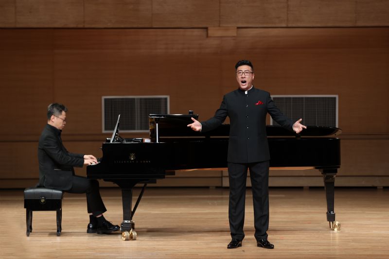 音乐会上,共演出14首声乐作品,展现出我院教师对不同风格声乐作品的精准驾驭与深刻理解。首曲《日破云涛万里红》大气恢弘,拉开了音乐会的序幕。歌剧选段《娘在那片云彩里》,演唱者以饱含张力的声线刻画角色情感,抒发家国情怀。随后的两首由维吾尔族民歌改编的作品《再唱一杯美酒》《美丽的阿瓦尔日古丽》将民族唱腔的细腻婉转与地域文化的醇厚底蕴完美融合。充满澎湃激情的曲目《三江口》,演唱者以丰富的情感和精湛的演唱技巧展现出歌曲中江河奔腾的壮丽景象。歌剧选段《影子之歌》《苦涩的欢乐》《孤独,堕落,我被人抛弃》,三位演唱者凭借扎实的声乐技巧与戏剧化表达,重现经典作品的艺术魅力,彰显声乐演唱的严谨技巧与张力。河北民歌《小白菜》极具感情色彩和变化,演唱者将中国传统民歌曲调与西方声乐技法完美融合,为歌曲赋予新的内涵。随后的流行声乐曲目《一面湖水》、《光亮》等作品,演唱者以专业声乐技巧表现流行与爵士风格,展现出我院教师对现代音乐艺术的前沿诠释与创新实践。