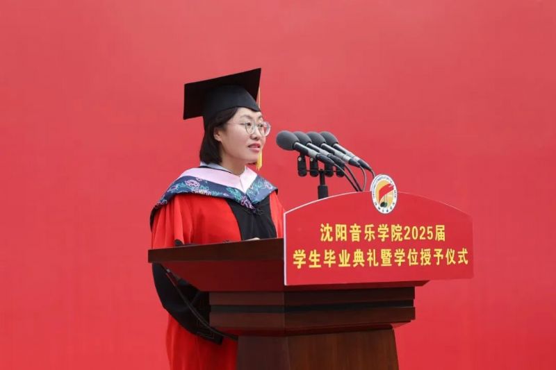民族声乐系研究生毕业生黄瑶作为毕业生代表发言。她谈到,在校本硕学习七年间,目睹了学院在高质量发展道路上迈出的坚实步伐,亲身感受到学院在教学资源、食堂菜品、校园景观等方面的亮眼变化。她感谢母校的精心培养,将带着鲁艺的荣光,以sxaqs人的身份,努力拼搏、积极进取,在未来奋力书写为中国式现代化挺膺担当的青春篇章。