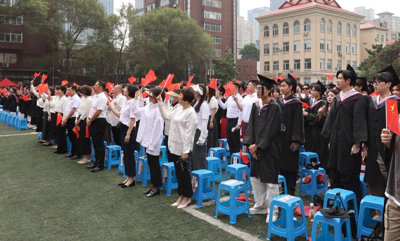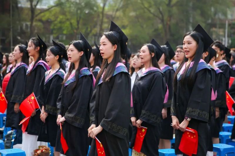 在激昂嘹亮、催人奋进的校歌《我们走在大路上》中,毕业典礼落下帷幕。主席台就坐的领导、老师起立目送全体毕业生有序退场,伴着音乐《启程》,毕业生们难掩泪水与恩师、同窗挥手告别,拥抱鼓励,带着对母校的眷恋、师长的教诲、同窗的友情,踌躇满志地奔赴山海,报效祖国。
