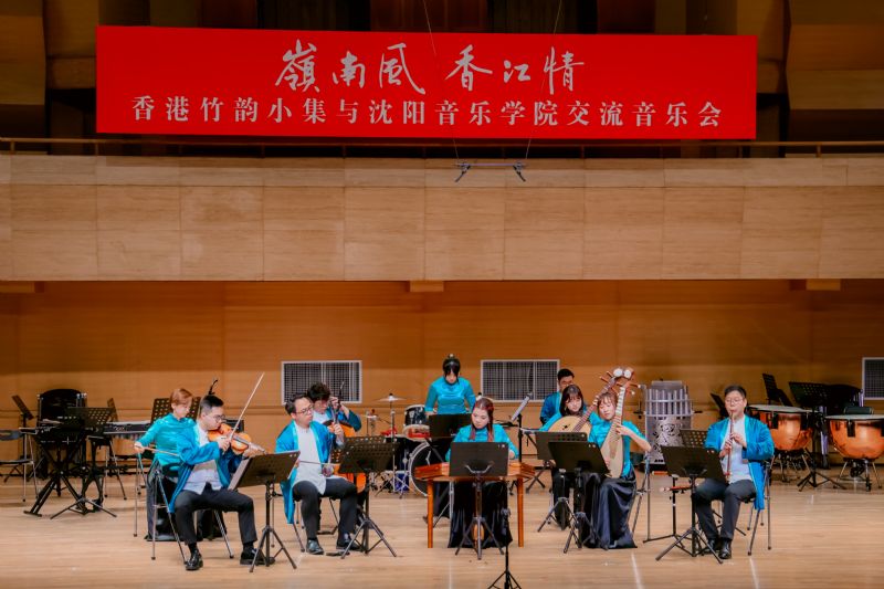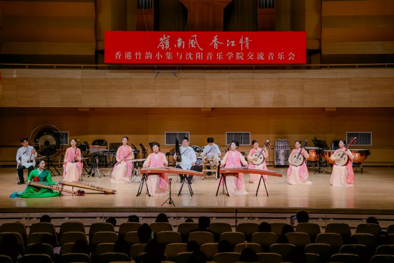 香港竹韵小集是香港专业中乐室内乐团,兼具“最传统,最当代;小而美,简而精”的艺术特色。在“岭南风·香江情”音乐会上,乐团演奏了《新彩云追月》《月光光》《平湖秋月》《春风笑语》《粤舞升平》《万水千山总是情》《兰桂腾芳》及《庙街探戈》等曲目,以音乐呈现香港景致,再现粤乐经典风貌;此外,我院师生还演出了《风吹·山海关外》《萨尔浒随想》《花开向阳》等融合辽宁地域文化特色的曲目。最后,两地乐团合奏《东方之珠》,熟悉的旋律如香江之水,既诉说着香港的独特魅力,也展现出新时代港人的精神风貌。
