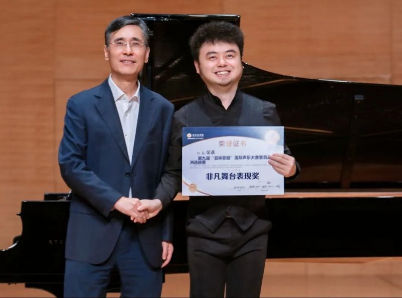 在决赛现场,21名选手在歌剧咏叹调的严谨诠释与艺术歌曲的个性表达间激烈角逐,他们凭借对音乐语言的深刻理解与充满感染力的舞台表现,在赛场上呈现了一场兼具学术深度与艺术魅力的歌唱艺术盛宴。茱莉亚音乐学院、大都会歌剧院艺术指导迈克尔•费内利(Michael Fennelly)在决赛中担任艺术指导,他出神入化的钢琴演奏助力每一位选手的歌唱技艺得以最完美的呈现。在决赛中,每位选手按照赛事规则均演唱了一首中国作品,更为这场艺术盛宴注入了鲜明的民族气质,彰显出中国文化的深厚自信。