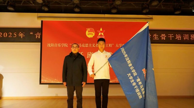 耿岩为培训班授旗。鲜红的旗帜象征着信念的光辉与使命的传承,标志着新一届“青马工程”培训班正式启航。