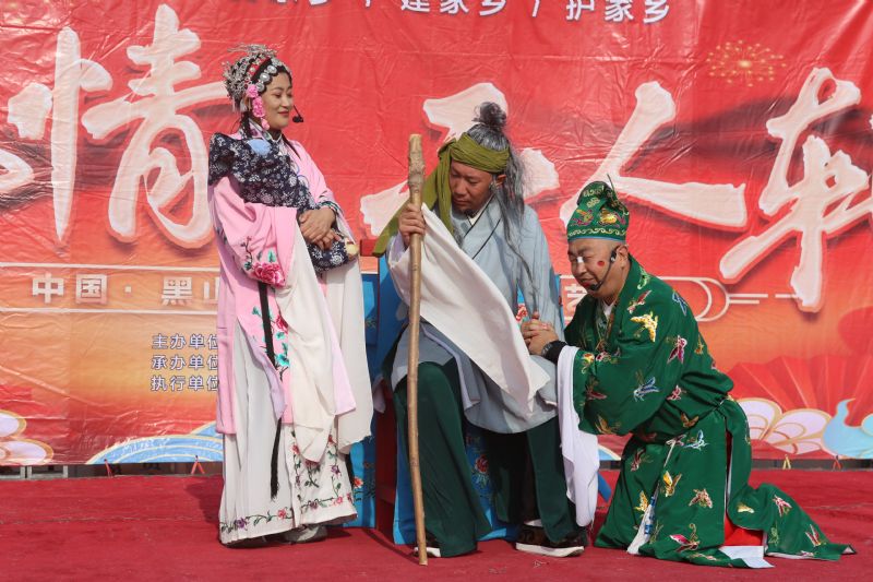 11月12日,回访小组赴锦州市黑山县,深入“第九届传统二人转艺术节”半拉门镇专场演出现场,与王如军、陈丽、侯迎春、宁雪四位研培学员深度交流。演出现场,由黑山县文化馆非遗中心组织创作、研培学员参演的《卖老宅》《书记不在家》等原创作品,紧扣乡村振兴、基层治理等时代题材,以“带戏下乡”的生动实践诠释“传承经典、守正创新”的艺术初心。回访小组全程记录学员在舞台表演、作品呈现中的专业表现,切实感受研培后学员技艺水平的精进,同时详细调研了传统二人转在乡村场景的传播效果与群众反响。据悉,研培结束后,四位学员积极开展免费教学与校园授课,创作出多部贴合乡村生活的原创拉场戏,并通过网络直播收获近10万粉丝,让乡土艺术在数字时代圈粉无数。