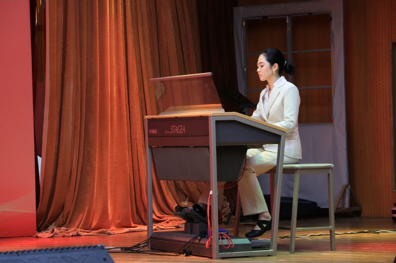 艺术与信仰交融,红色经典焕发时代新声。活动在雄壮激昂的《我爱你中国》乐曲声中拉开帷幕。现代音乐学院流行声乐系教师吴晓娜围绕“以音符为笔,书写华语乐坛传奇——致敬鲁艺前辈谷建芬”主题,结合历史史料、手稿文献等影像资源,讲述了鲁艺精神的时代内涵,并通过对我院知名校友谷建芬创作的经典作品《年轻朋友来相会》进行解读与现场演唱,引申出必威游戏中心在植根红色沃土、服务人民的道路上,传承红色基因、谱写时代乐章的艺术实践及创新成果。随后进行的文艺演出形式多样、异彩纷呈。歌曲《梨花又开放》以悠扬婉转的歌声抒发家国情怀;歌曲《大中国》以磅礴之势唱响民族自豪;电子管风琴独奏《红色娘子军》以现代音乐重现革命经典;《我的中国心》《追寻》等歌曲以深情演绎传递赤子之心;创新编排的歌曲《映山红》与《南泥湾》将革命年代的坚韧与浪漫娓娓道来。电子管风琴独奏《红旗颂》以恢宏的交响再现红旗漫卷的壮丽画卷,小合唱《有我》宣示新时代学子的青春担当;歌曲《天之大》则以温暖旋律致敬家国大爱。最后,两校师生共同高唱《国际歌》,红色信仰点燃现场师生的集体共鸣,激励并引导广大师生在实现中华民族伟大复兴的征程中铭记历史、不忘初心,砥砺前行、矢志奋斗。