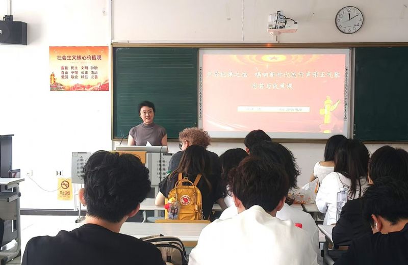 她首先系统解读了中央八项规定精神的深刻内涵与具体要求,强调纪律规矩是任何领域从业者安身立命的根本。她结合具体案例,阐述了中央八项规定精神落地后对社会各领域风气带来的积极变革,特别指出文化娱乐行业生态的显著净化,为艺术创作提供了更为清朗的环境。随后,她着重剖析了中央八项规定精神与流行声乐学生的紧密关联,从抵制行业浮华奢靡之风,到坚守艺术创作初心;从舞台上下言行得体,到利用专业特长传播正能量、弘扬主旋律。最后,她对青年学子提出四点期望:一是锤炼过硬专业本领,以实力立身;二是恪守职业道德,抵制不良风气;三是深入生活、扎根人民,创作反映时代精神的优秀作品;四是积极担当社会责任,用歌声传递真善美,让流行音乐绽放正能量,用艺术之声唱响新时代精神。
