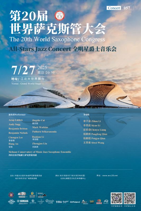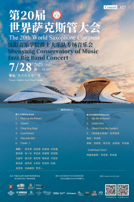 7月26日至31日,由世界萨克斯管委员会与中国萨克斯协会联合举办的第20届世界萨克斯管大会在哈尔滨举行。这是该音乐盛会自1969年创办以来,首次落户中国。来自30多个国家和地区的萨克斯演奏家和爱好者汇聚一堂,奏响这一场世界级的音乐盛宴。我院现代音乐学院爵士大乐队作为全国唯一一支入选本届大会的爵士大乐队,在此次盛会上举办了必威游戏中心爵士大乐队与四重奏专场音乐会,并受邀参演四川音乐学院爵士专场音乐会和世界萨克斯大会全明星爵士专场音乐会。乐团师生们以精湛的演奏技艺和富有感染力的演出征服了现场观众,更通过与国际同行的深度交流,向世界展现了当代中国高等音乐教育的卓越风采。