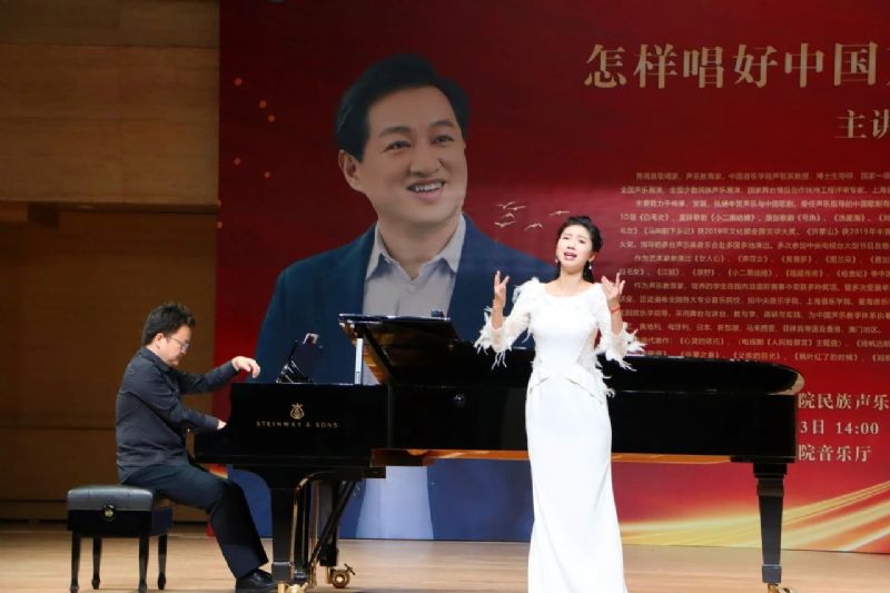 本场教学音乐会曲目丰富、类型多样,王洪波老师的本科、硕士研究生、博士研究生四位学生共演唱了16首曲目,参演人员以其过硬的专业技能与舞台感染力为我院师生带来了一场精彩的视听盛宴,让不同时期、不同风格的声乐作品粲然穿行于观众耳鬓之间,把不同的中国故事诉说得旖旎悦耳,引发强烈的情感共鸣,赢得现场如潮掌声。