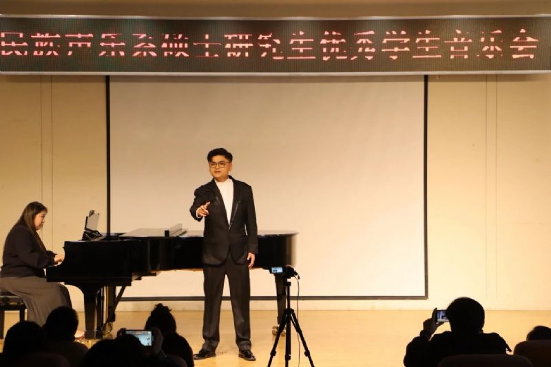 此次音乐会民族声乐系硕士研究生以炽热的艺术热忱、精湛的演唱技巧、真挚的情感表达,为全系师生带来了一场难忘的艺术之旅。演唱曲目涵盖了地方色彩鲜明的民歌、意蕴深厚的古诗词艺术歌曲、跌宕起伏的歌剧选段以及独具时代特色的创作歌曲。这些曲目不仅展示了学生们的演唱技巧,更彰显出民族声乐系高质量的教学水平和深厚的民族声乐艺术底蕴。