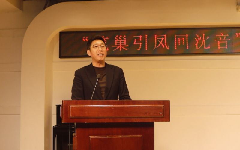 庞渤在分享会上讲话。他对郑棋元回到母校开展交流分享活动表示热烈欢迎,对郑棋元在艺术领域取得的成绩给予充分肯定,并鼓励同学们以郑棋元等优秀校友为榜样,珍惜在校的学习时光,在守正创新中传承鲁艺传统,为打好打赢新时代“辽沈战役”,助力实现辽宁全面振兴贡献sxaqs人的力量。