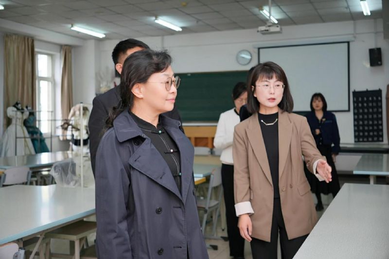 10月12日,出席“进一步全面深化改革 共谋创新发展之路——专业音乐教育高质量发展论坛”的中国歌剧舞剧院副院长唐莹专程到戏剧影视学院调研交流。学院党委书记刘纪刚、党委副书记石爽、副院长王莹陪同调研。唐莹先后参观了戏剧影视美术设计系的舞美设计展示厅、道具模型制作工作室、学生画室、舞台灯光实践剧场、服装制作工艺室等教学和实践场地。每到一处,唐莹都饶有兴致地欣赏学生们创作的各种模型、道具和服装等作品,并提出专业指导意见。