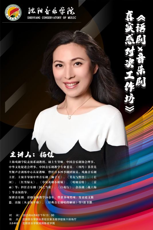 讲座预告:上海戏剧学院表演系硕士生导师杨佳副教授主讲《话剧×音乐剧:真实感对决工作坊》