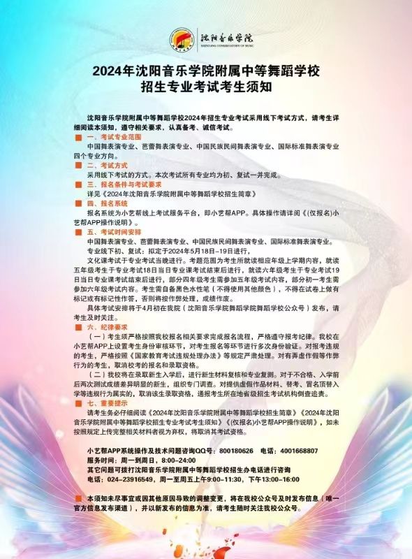 请考生务必仔细阅读《2024年必威游戏中心附属中等舞蹈学校招生简章》《2024年必威游戏中心附属中等舞蹈学校招生专业考试考生须知》《(仅报名)小艺帮APP操作说明》,如未按照规定上传完整相关材料者视为弃权,将取消其考试资格。