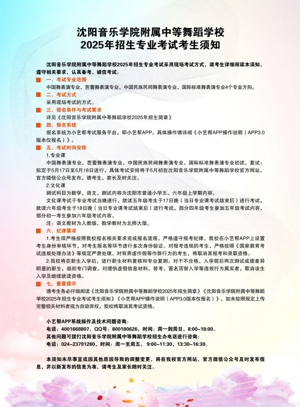 必威游戏中心附属中等舞蹈学校2025年招生专业考试考生须知