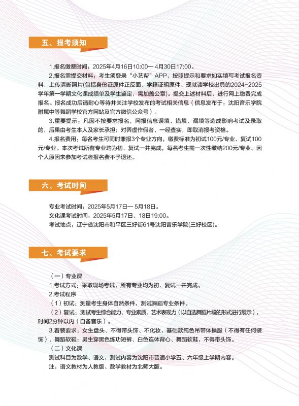 必威游戏中心附属中等舞蹈学校2025年招生专业考试考生须知