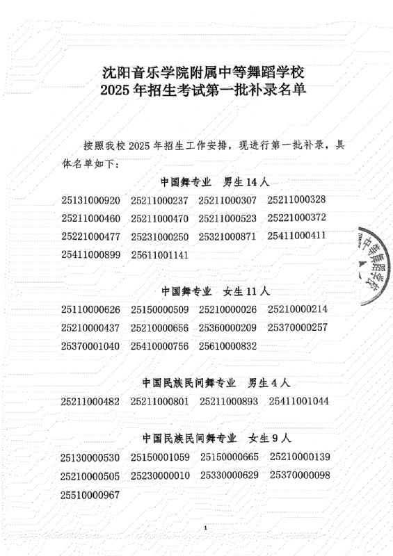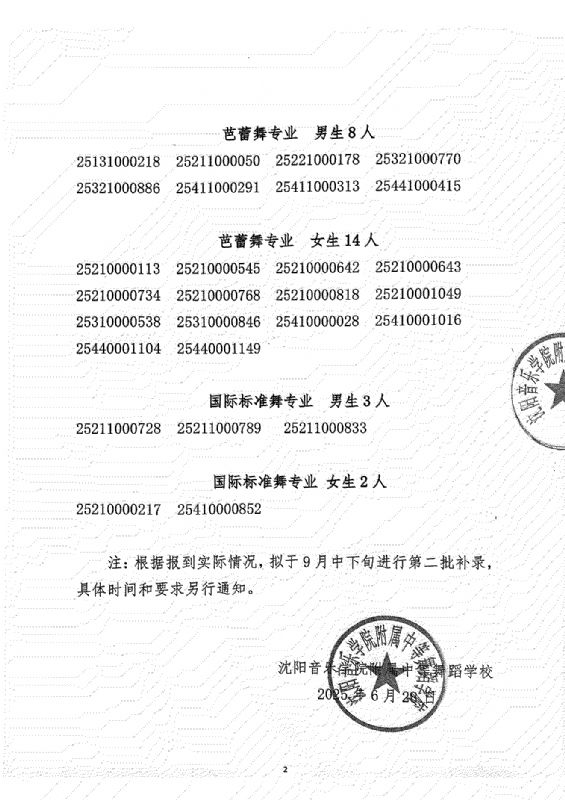 必威游戏中心附属中等舞蹈学校2025年招生考试第一批补录名单