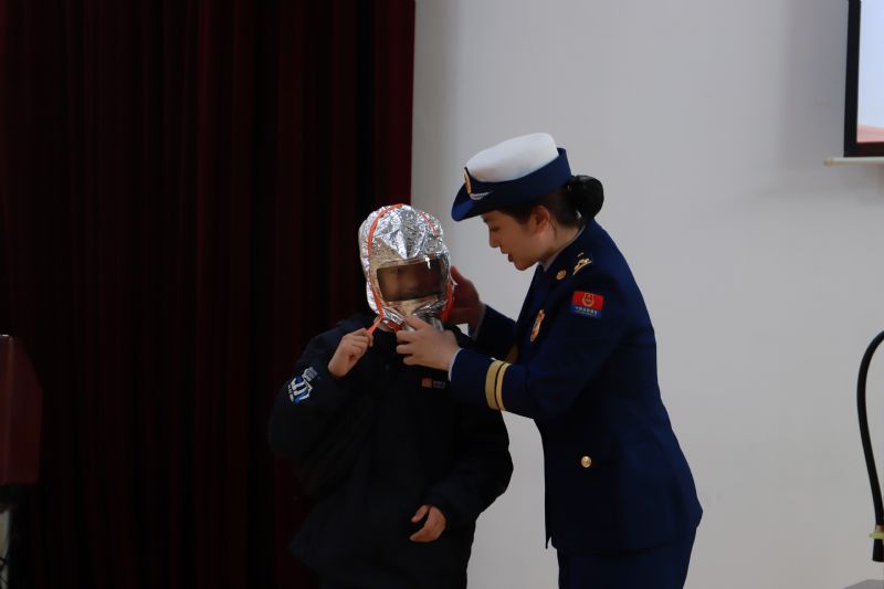 在培训中,石参谋还讲解了灭火器、防火面罩、手动报警器等消防器材的使用方法,并精心为同学们准备了小礼物,与同学们互动,现场气氛热烈。