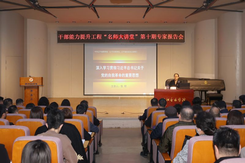 为深入学习贯彻习近平总书记关于党的自我革命的重要思想,贯彻落实党中央和省委关于开展党纪学习教育的部署要求,为开展好学院党纪学习教育蓄能充电、预热升温,引导全体党员干部进一步增强推进自我革命的自觉性和坚定性,把“讲诚信、懂规矩、守纪律”重要要求内化于心、外化于行,始终做到忠诚干净担当,着力营造风清气正的良好政治生态,4月10日下午,学院举办干部能力提升工程“名师大讲堂”第十期专家报告会,特别邀请中共辽宁省委党校(辽宁行政学院、辽宁省社会主义学院)党建教研部副主任张明教授就“深入学习贯彻习近平总书记关于党的自我革命的重要思想”作专题辅导报告。学院领导、处科级领导干部、党支部书记、专职组织员和专职党务工作人员近300人参加报告会。报告会由党委副书记孙旭东主持。