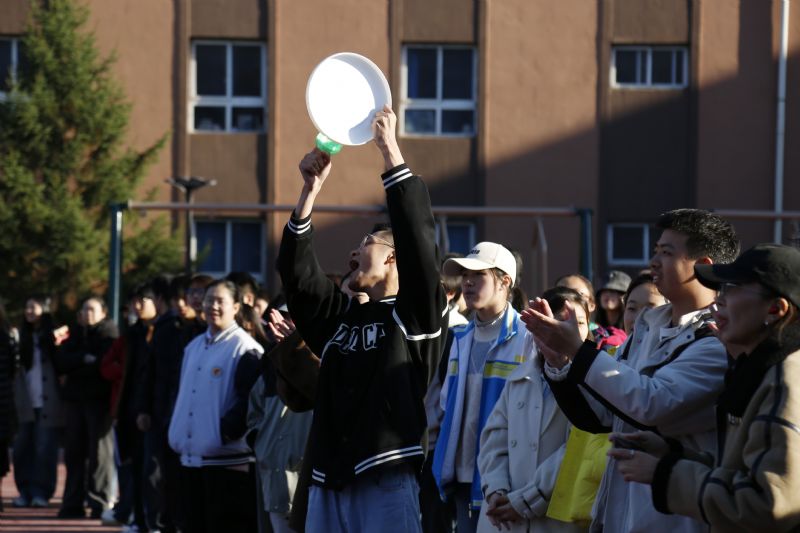 谢晓宇最后致辞。她高度肯定了全体运动员展现的拼搏精神,指出这场飞盘比赛不仅是体育竞技的舞台,更是同学们锤炼意志、学会协作的成长课堂。她希望同学们能将赛场上的热爱与坚持,延伸到音乐学习与日常生活的每一个角落,以青春之姿续写更多精彩。
