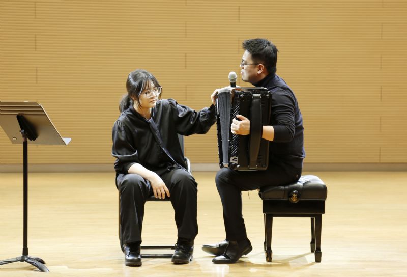 11月20日,附属中等音乐学校音乐厅内琴声悠扬、气氛热烈,一场高水准的手风琴大师课在此精彩开讲。本次活动特邀天津音乐学院刘睿副教授亲临授课,学校党总支书记赵美、校长曹野、党总支副书记谢晓宇、副校长崔姝声,键盘学科教师、行政科室负责人及百余名师生齐聚现场,近距离感受手风琴演奏家的教学魅力与学术风采。