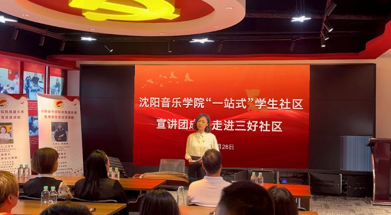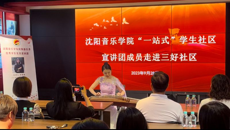 9月28日,我院“一站式”学生社区宣讲团走进三好社区开展红色经典音乐作品讲演会。沈阳市和平区三好社区书记田莉,我院学生处处长蒋雪丽、民族器乐系党总支书记常亮、学生处相关负责人及三好社区40余名党员参加活动。