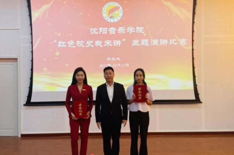 党委宣传部副部长李双雁、学生处副处长董文胜为优秀奖获奖选手颁奖