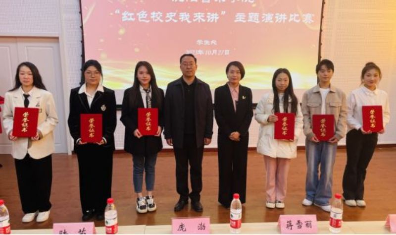 工会负责人陆苗、学生处处长蒋雪丽为二等奖获奖选手颁奖