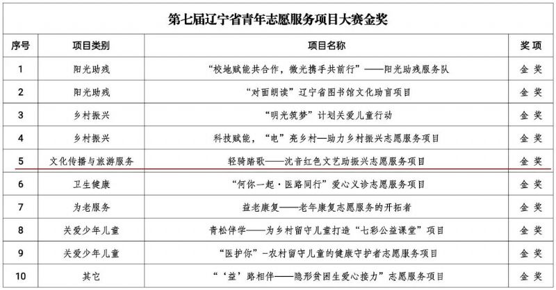 近日,由辽宁团省委、中共辽宁省委社会工作部、辽宁省文化和旅游厅等12个部门联合会主办的第七届辽宁省青年志愿服务项目大赛暨志愿服务交流会圆满落下帷幕。我院《轻骑踏歌——sxaqs红色文艺助振兴志愿服务项目》与全省各领域的281个项目同台竞技,最终脱颖而出,荣获省级金奖,并作为辽宁省10个金奖项目中唯一文化传播与旅游服务领域的项目参加中国青年志愿服务项目大赛。