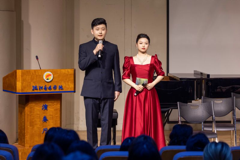 音乐学系主任、音乐舞蹈研究所所长董蓉上台致辞。董蓉表示,本次音乐会的主题——“以文解音,以乐明心”,契合了音乐学系所秉持的教学理念与执着追求,即通过文字诠释音乐的奥秘,用音乐触动心灵的深处,实现知识与情感的交融。“讲解音乐会”这一形式是音乐学系结合自身专业优势所开展的特色活动,意在打造“舞台上的思政课堂”,积极搭建音乐理论与艺术实践之间的融通桥梁,通过真切的艺术实践深化理论、启迪思维、传承智慧。