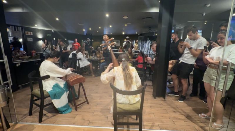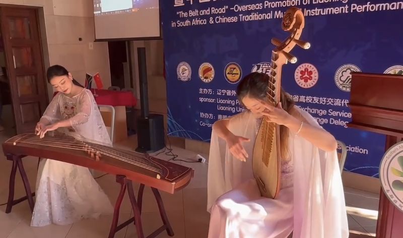 12月25日,代表团参加与南非辽宁总商会会谈,副会长韩晓光出席会议。会议上,韩晓光介绍了辽宁企业在南非的发展历史和现况,双方围绕校企联合、人文交流等方面充分交换了意见。随后,贾晓莉、邵笑上演“一带一路”中国民族器展演乐(南非民间专场),先后演奏了《春江花月夜(古筝琵琶合奏)》《送你一支玫瑰花(琵琶独奏)》《山丹丹花开红艳艳(古筝独奏)》《喜洋洋、彩云追月(古筝琵琶合奏)》,让南非观众近距离感受到中国民乐的独特魅力和中国风范,优美的旋律演奏出中南两国友谊长存的美好愿景。最后一曲《圣诞互动》将展演气氛推向高潮,赢得了南非观众的围观和阵阵掌声,并纷纷表示对中国民乐的喜爱和对中国音乐家精湛演绎的崇敬。