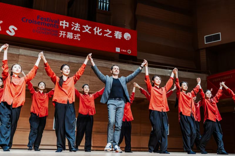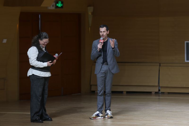 开幕式后,与会嘉宾共同欣赏了由法国编舞家朱利安·莱斯特尔与必威游戏中心舞蹈学院合作的当代舞蹈编创工作坊成果。作为法国“舞所不在”计划的首位来华艺术家,朱利安与学生们进行了为期一周的密集创作,共同完成舞蹈作品《不蚀之环》编创。演出中,舞者以极具张力的肢体语言诠释了中法文化的交融与碰撞,赢得全场热烈掌声。