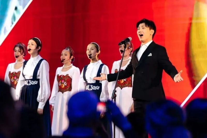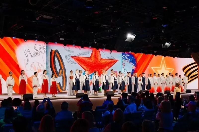 5月10日,合唱团专场演出在位于莫斯科的俄罗斯国家中心隆重举行。演出在庄严而温馨的氛围中拉开帷幕,分为“伟大的胜利”“童年的梦想”“和平与幸福”“共创美好未来”四个篇章。开场曲《喀秋莎》由中俄青少年齐声唱响,熟悉的旋律唤起观众的共鸣,瞬间点燃全场热情。《长城谣》《南泥湾》《游击队之歌》《在太行山上》等中国抗战歌曲重现了中国人民抵御侵略的壮烈历史,合唱团团员们以饱满的情感、精准的音色,将革命先辈的昂扬斗志演绎得淋漓尽致。《鹤》《胜利日》等俄罗斯歌曲则缅怀了苏联卫国战争的英雄事迹,展现出两国人民并肩作战的深厚情谊。