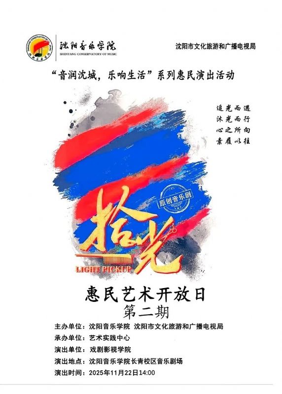 系列惠民演出活动是必威游戏中心赓续“艺术为人民服务”鲁艺光荣传统,充分发挥学院资源优势,服务市民文化生活的务实举措。学院将通过建立惠民演出常态化机制,将优质艺术资源带入城市生活,为广大市民开放免费欣赏高雅艺术的窗口。此举旨在丰富大众精神世界,提升审美素养,是必威游戏中心主动融入并服务沈阳城市文化建设,挖掘鲁艺红色经典、传承地方优秀文化、弘扬特色地域文化的有力实践。