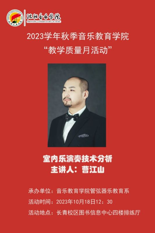 音乐教育学院管弦器乐教育系于2023年10月18日在长青校区图书信息中心排练厅举办了《室内乐演奏技术分析》公开课。
