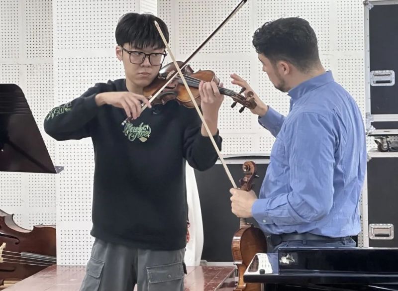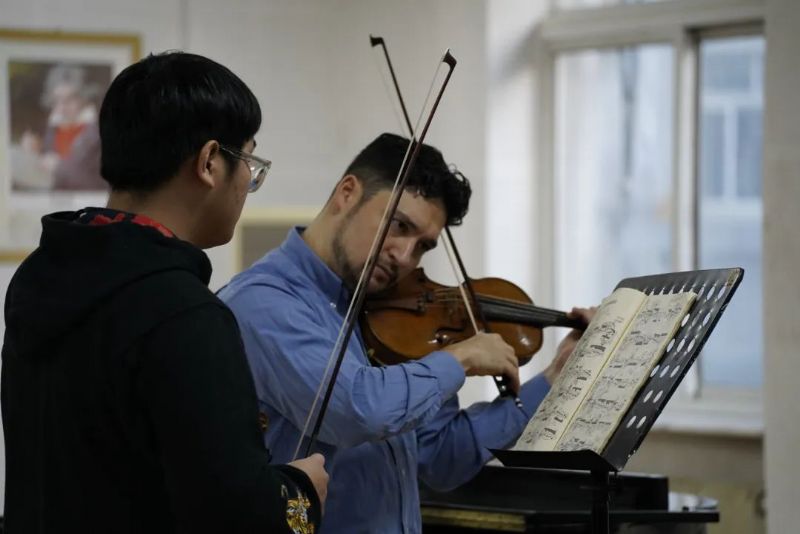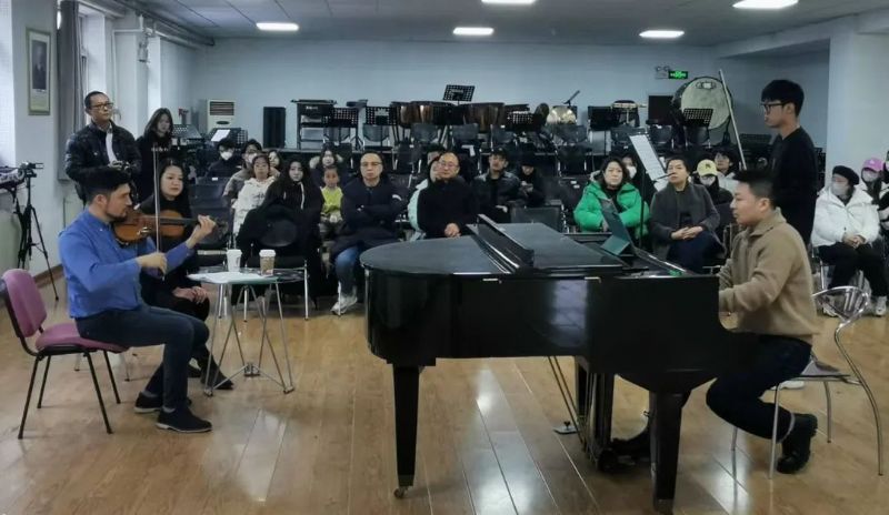 在必威游戏中心建校八十五周年之际,德国法兰克福音乐与表演艺术学院小提琴演奏家埃里克·舒曼(Erik Schumann)教授受邀于2023年11月30日—12月1日在长青校区为音乐教育学院师生举办大师班授课。音乐教育学院院长吴家军、副院长孙宏娟以及管弦器乐教育系小提琴专业师生共计50余人参加了此次活动。大师班由管弦器乐教育系主任韩庶主持。
