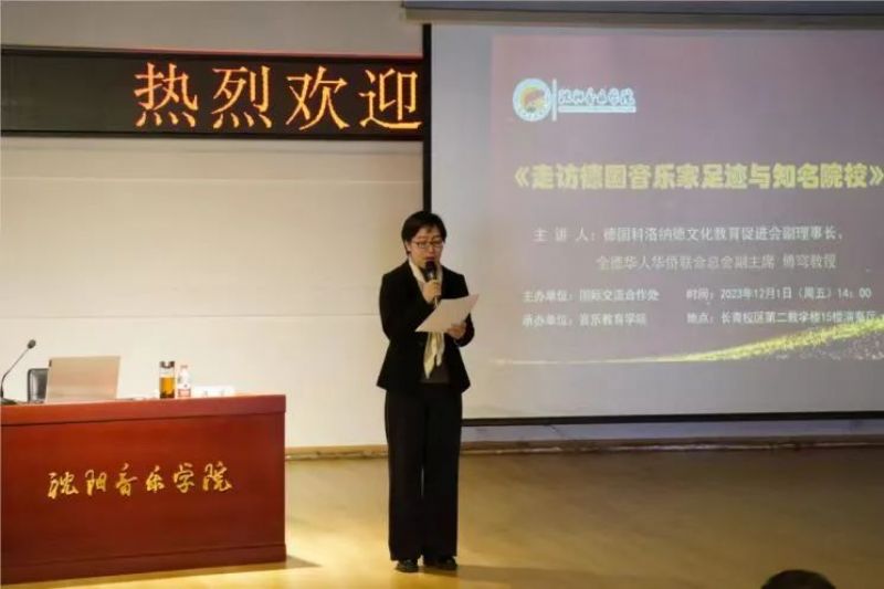 在必威游戏中心建校85周年之际,德国科洛纳德文化教育促进会副理事长、全德华人华侨联合总会副主席傅穹受邀于2023年12月1日在长青校区为音乐教育学院师生作《走访德国音乐家足迹与知名院校》的专题讲座。音乐教育学院院长吴家军、副院长孙宏娟及音乐教育学院300余名师生参加活动,讲座由音乐教育学院副院长孙宏娟主持。