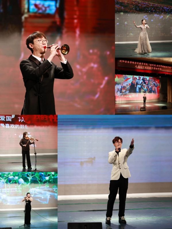 “金号角”文艺宣讲团在辽宁省实验中学艺术中心开展文艺演出。辽宁省实验中学党委委员、副校长、分管初中部校长于长禄与初三年级、初一年级全体教师及学生共同观看演出。古筝四重奏《山丹丹开花红艳艳》拉开了文艺演出序幕;男声独唱《红星照我去战斗》《倔强》、女声独唱《灯火里的中国》在满怀深情、嘹亮高亢的歌声中让大家感受到“党的教导记心头”的滚烫誓言;器乐三重奏《Where did all the birds go》和小提琴独奏《我爱你中国》展现了西洋管弦乐器流淌的优美旋律和爱国情怀;竹笛独奏《扬鞭催马运粮忙》、唢呐独奏《胜利秧歌》、马头琴二重奏《万马奔腾》展现了中国民族器乐之声散发的文化自信;男女声二重唱《春风十万里》和男女声四重唱《领航》用交相辉映的旋律交错唱响中国时代之声;全体大合唱《相亲相爱》将演出推向高潮。活动现场,师生掌声雷动,热情高涨。