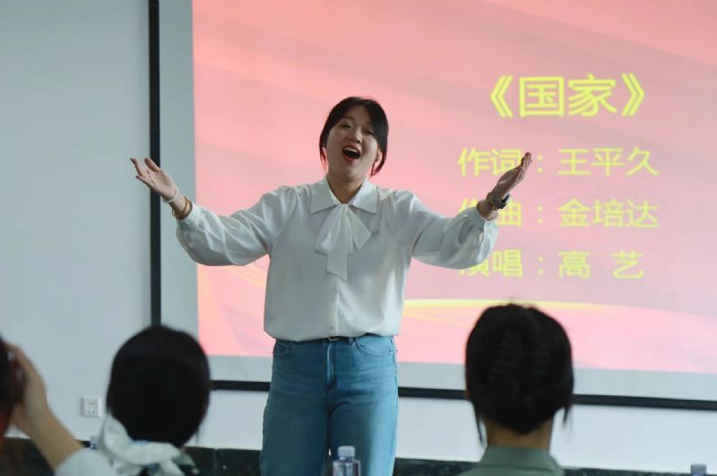 参观结束后,师生们为纪念馆工作人员带来了一堂音乐党课。伴随着党课主讲人庄重严肃的讲解,《松花江上》《我的祖国》《祖国,慈祥的母亲》《我爱你中国》等经典歌曲相继唱响,表达了同学们对祖国的热爱和对革命先烈的缅怀和崇敬之情。党课最后,民族声乐教育系党支部书记李礼深情演唱了原创作品《赶考路上》,优美嘹亮的歌声、激昂的旋律将活动气氛推向高潮。最后,全体演员和观众集体演唱了《义勇军进行曲》,激昂的歌声在纪念馆内回荡,让在场的每一个人都心潮澎湃、热血沸腾。